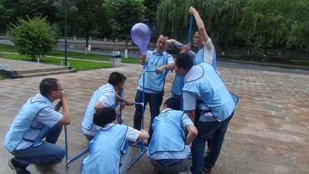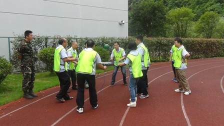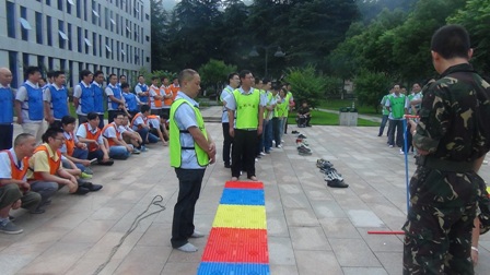 在拓展項目訓(xùn)練中,大家聽從指揮、服從安排,整個活動在緊張、激烈、歡聲中度過。活動開始,教練把參訓(xùn)人員分成“天藍(lán)色、深藍(lán)色、橙色、紅色、淺綠色、深綠色6支隊伍。在統(tǒng)一著裝及熱身后,大家便以小隊為單位投入到緊張的訓(xùn)練課程中。活動包括指壓板、撕名牌、真人CS、呼吸的力量、同心鼓、動力圈等項目,每一項訓(xùn)練,都是一次感動,每一次感動,都帶來一次心靈的震撼。每個游戲結(jié)束后,大家都對失敗的原因進(jìn)行深刻總結(jié),通過總結(jié)去領(lǐng)悟活動中所蘊含的理念和精神。讓大家深刻感受到了溝通、合作、相互激勵、融洽人際關(guān)系以及尊從團(tuán)隊規(guī)范的重要性。如:“呼吸的力量”項目需要把各自隊伍分成 “領(lǐng)導(dǎo)組”“指揮組”和“執(zhí)行組”3個組。各小組成員各負(fù)其責(zé),由“領(lǐng)導(dǎo)組”成員向“指揮組”成員描述“呼吸機”的構(gòu)造及制作方法,再由“指揮組”傳達(dá)并指導(dǎo)“執(zhí)行組”動手制作。如何向其他成員描述機器的構(gòu)造和制作方法,以便耗時最短最高效的完成“呼吸機”的制作,考驗著大家上傳下達(dá)的語言技巧、溝通的能力和協(xié)作能力。還有在最后進(jìn)行的“動力圈”項目,更是將團(tuán)結(jié)協(xié)作作用發(fā)揮到了極致,所有人圍成圓形,用力將柔軟的繩索向后拉扯,讓繩索變成一條鋼鐵般堅硬的繩圈,各自的隊長在繩子上抱圓走完全程!成功與否,在于對團(tuán)隊成員信任,這種信任感來源于100%的執(zhí)行力和團(tuán)隊協(xié)作能力!最終每個隊的隊長安全的走完了全程,活動在“眾人劃槳開大船”的激昂音樂中完滿結(jié)束。 一天的活動,每個人都有一份收獲、一份感悟。大家高效執(zhí)行、自我挑戰(zhàn)、互助協(xié)作、克難攻堅,增加了大家對團(tuán)隊的理解和對自我價值的衡量。激發(fā)了大家克服了困難、克服了人性的弱點,真正的領(lǐng)悟到了團(tuán)隊力量的強大,只要大家心往一起想、勁往一處使,任何困難和挫折都會被我們踩在腳下、拋在腦后,團(tuán)隊目標(biāo)也一定會實現(xiàn)!