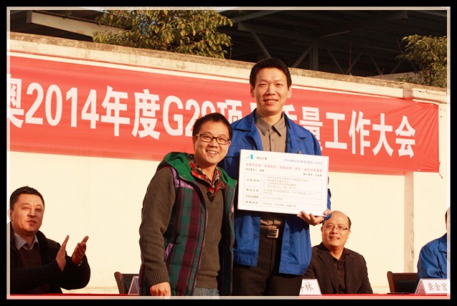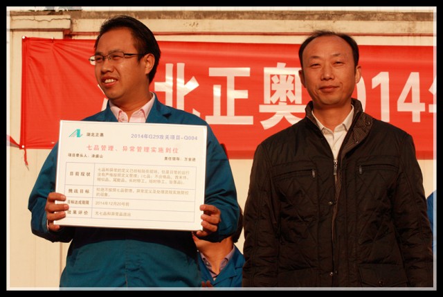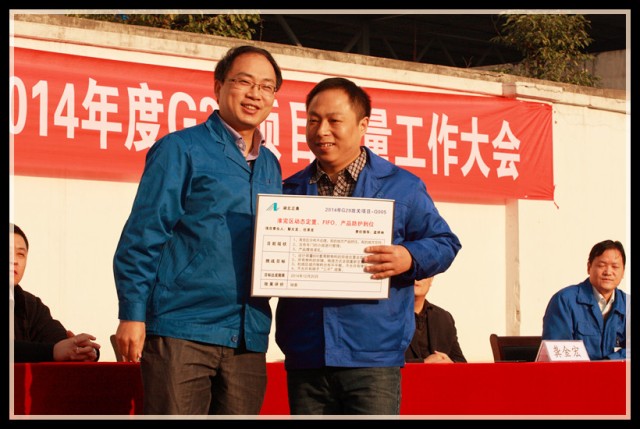 到會領(lǐng)導(dǎo)為G29項(xiàng)目組成員頒發(fā)了戰(zhàn)表,為下一階段的改善制定新的挑戰(zhàn)目標(biāo),全體員工見證了這一重要時刻,并在會議現(xiàn)場用熱烈的掌聲表達(dá)了完成任務(wù)的信心和決心。